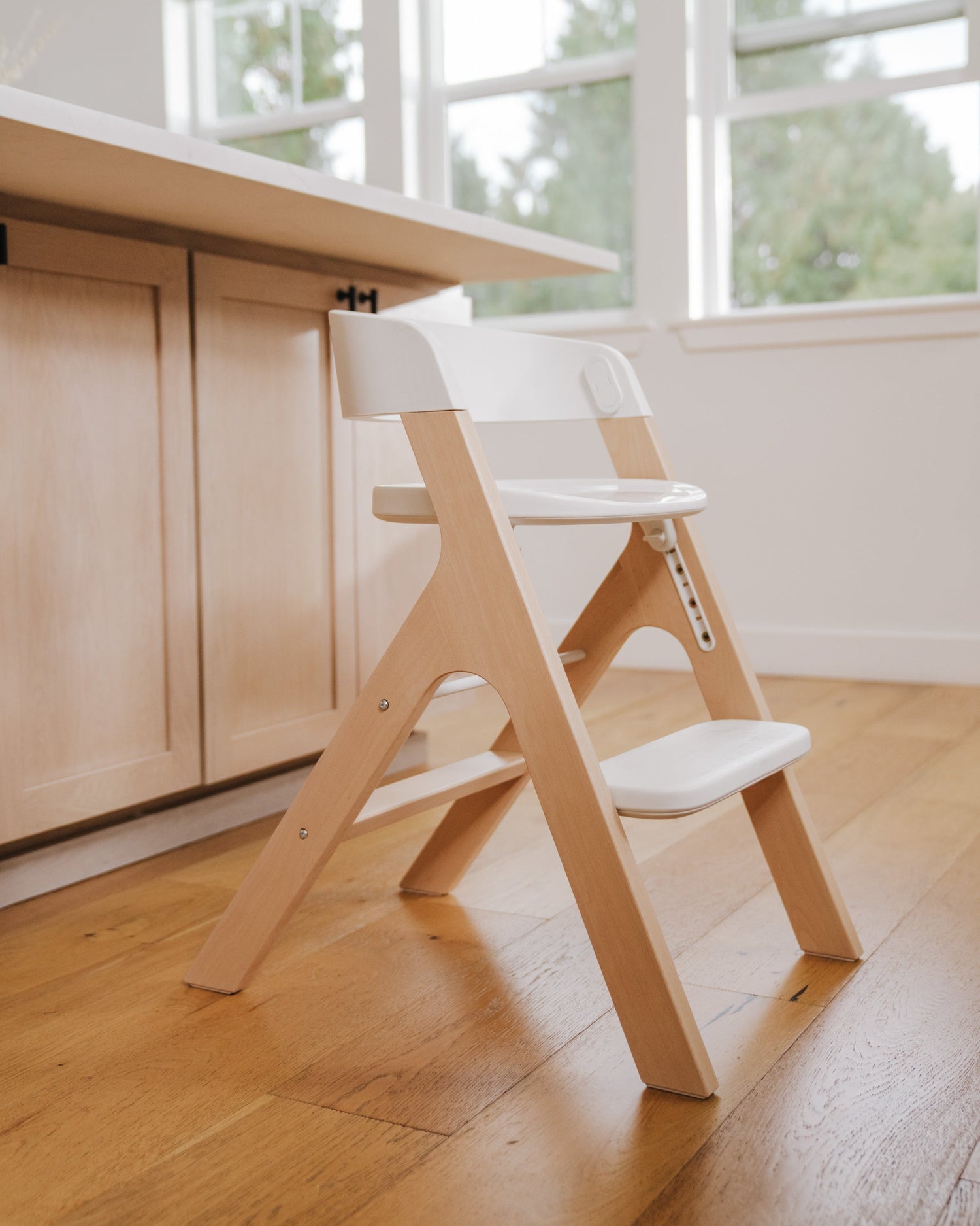 Las patas de la trona están fabricadas con madera de haya maciza certificada FSC, procedente de fuentes sostenibles.